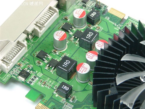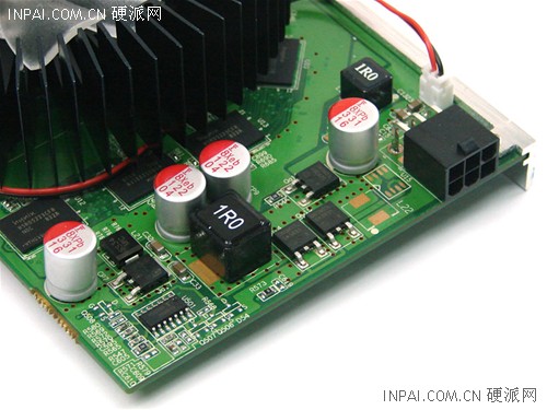 供电部分,铭鑫视界风9600GTD-512D3/256D3同心版供电部分采用扎实的三相供电设计(核心两相/显存一相),用料上全部采用高品质的富士通固态电容和全封闭式电感,和全封闭式电感,减少了电路间互相干扰的几率,而为了保持显卡工作稳定,显卡还采用了独立的6pin电源口独立供电。