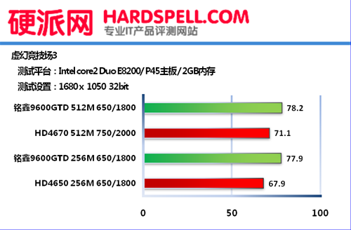 值得一提的是,虽然显存容量差了一半,但是铭鑫512M版9600GTD和256M版的性能差距并不大,这可能与我们选的测试项目有一定关系。另外,该显卡由于采用了更先进的55nm制程工艺,所以在发热量、热设计功耗以及性能方面相比于老版9600GSO更值得选购。