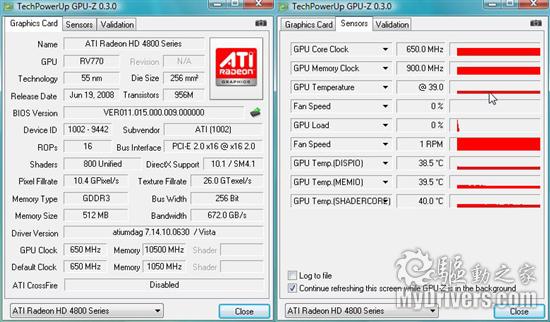 GPU-Z软件对这款变频版4850显卡识别得并不是很好,这也是非公版显卡经常遇到的问题,因为GPU-Z软件的检测信息基于显卡取动程序,而非显卡BIOS。