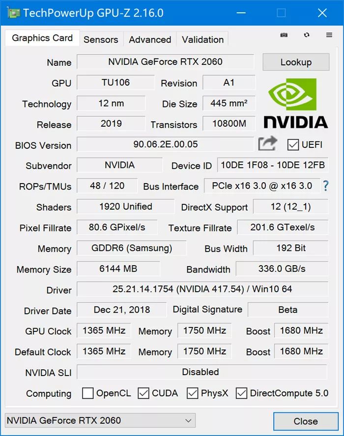 GPU-Z 2.16.0已经加入对RTX 2060显卡支持,识别正常