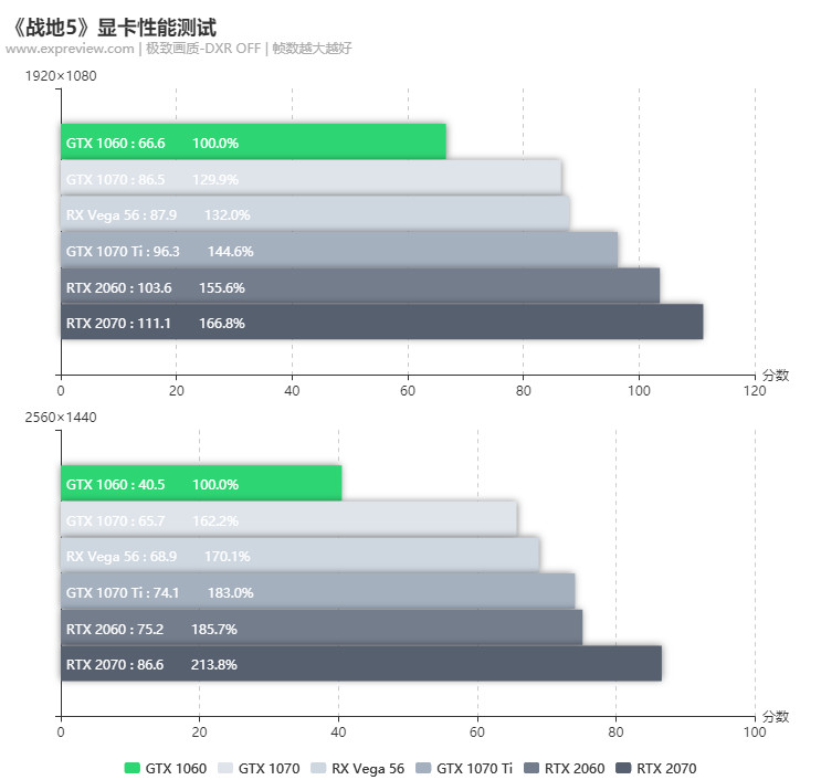 下面我们再来看看RTX 2060 Founders Edition实际游戏表现,GTX 1060征战的主要战场在1920×1080分辨率,那么RTX 2060表现如何?