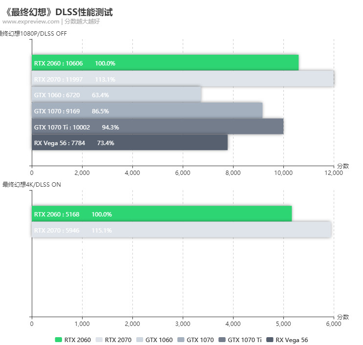 而目前能够反映DLSS性能也只有《最终幻想15》,下面将会测试RTX 2070、RTX 2060在4K DLSS下性能差异。