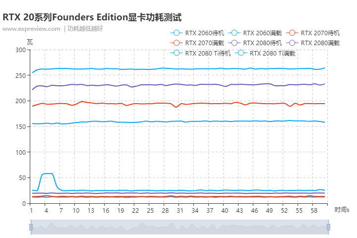 RTX 2060 Founders Edition与RTX 2070 Founders Edition待机功耗类似,只有12.2W,平均满载也只有159.1W,符合NVIDIA公布的TDP数据。