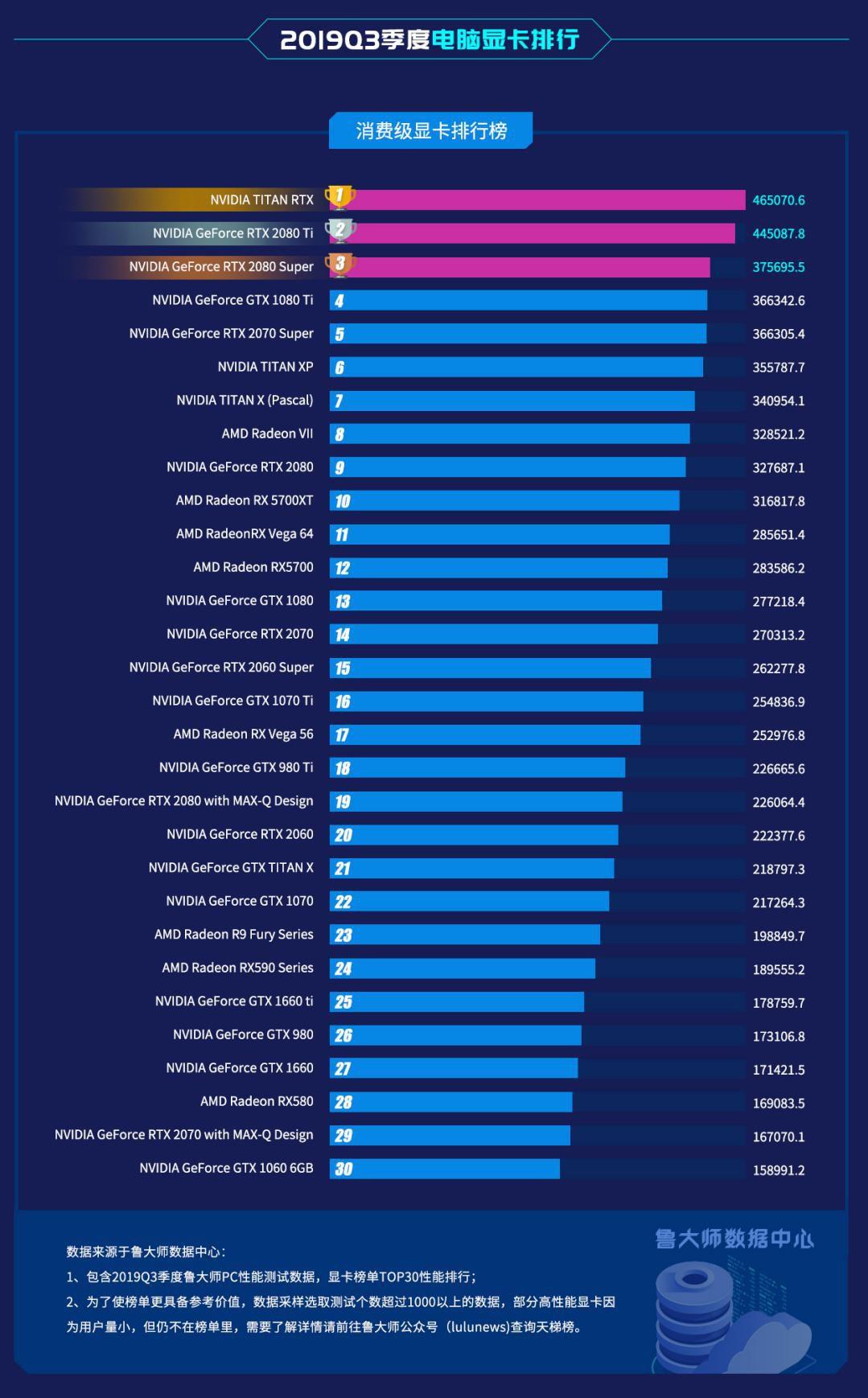 近日鲁大师公布了Q3季度显卡性能排行和最受欢迎排行,两个榜单中英伟达均呈现霸榜趋势力压AMD。
